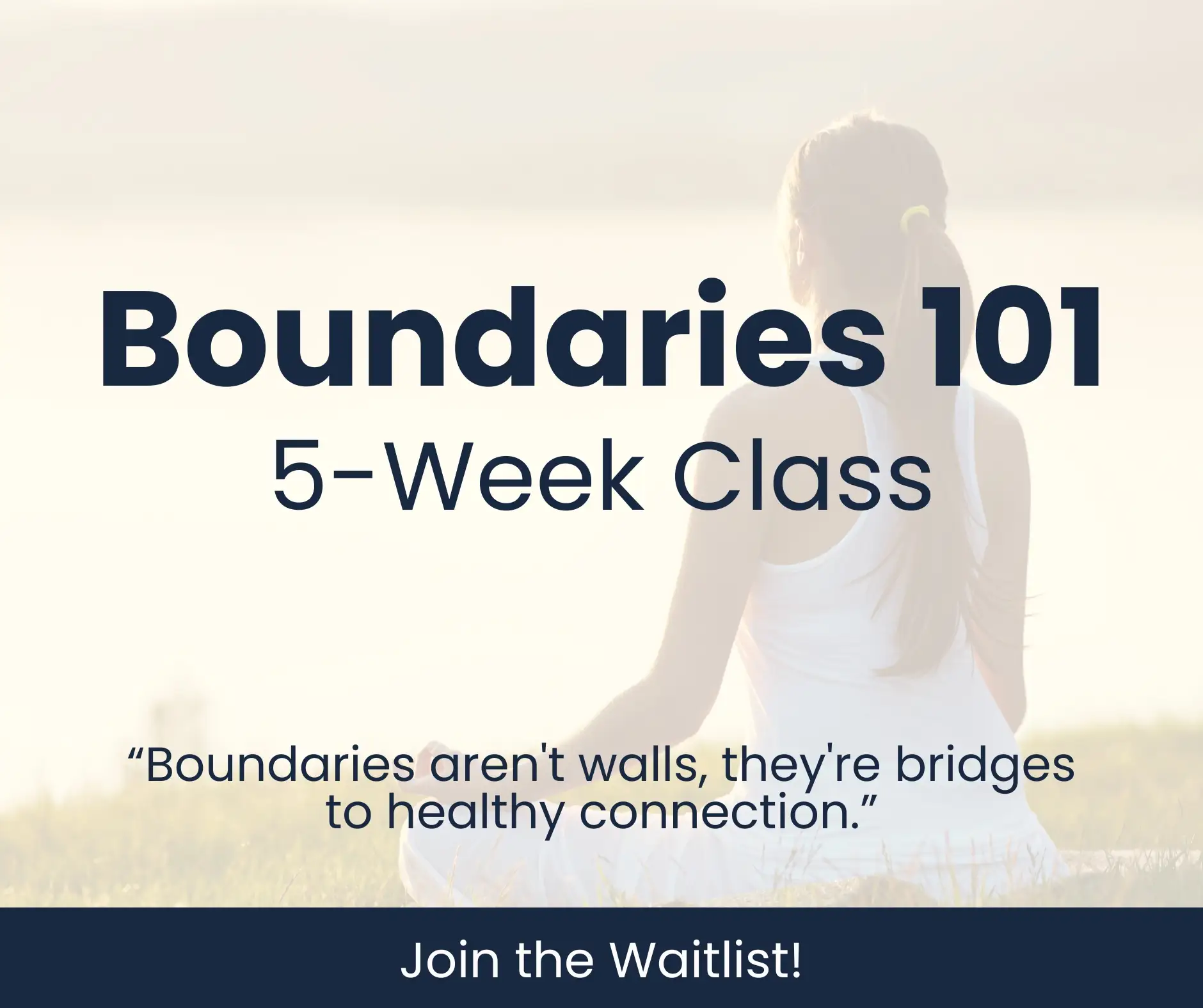 Boundaries aren’t walls—they’re bridges to healthy connection. Over five intentional weeks, I’ll guide you through Boundaries 101—a practical, research-informed class designed to help you understand, set, and maintain boundaries that honor your values and relationships.